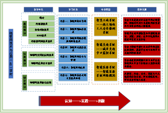 课程内容秉持“模块化整合、单元式分解、任务项落实、项目化驱动”的核心理念,将课程划分为三大核心模块,即基础模块、拓展模块与综合模块。各模块包含若干教学单元,单元内部对任务项予以细化,形成递进式布局,最终通过贯穿整个课程项目实现技术融合与能力提升,构建“知识—任务—项目—能力”的闭环培养体系。课程内容设计围绕智慧工地系统、智能交通系统、智慧农业系统等典型应用场景开展教学项目设计。各项目被拆解为若干任务模块,将理论知识融入项目实施过程,达成“做中学、学中做”的教学成效。