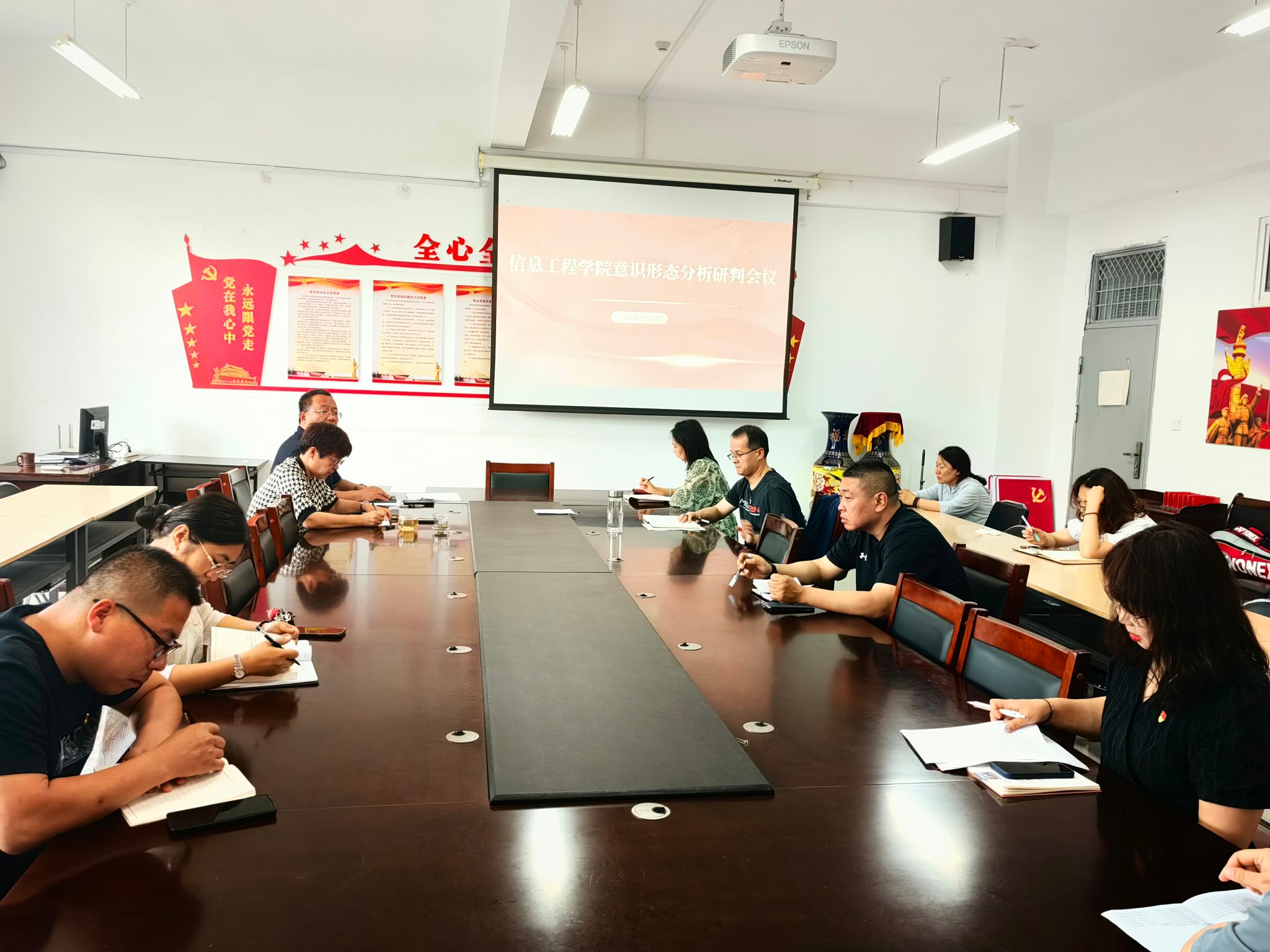 会议传达学习了习近平总书记关于意识形态工作的重要论述精神,传达了学校第二季度意识形态工作分析研判会议精神,围绕职本理念、网络意识形态、网络诈骗、宗教渗透、安全工作等方面内容,分析研判了存在问题、风险点及应对措施。