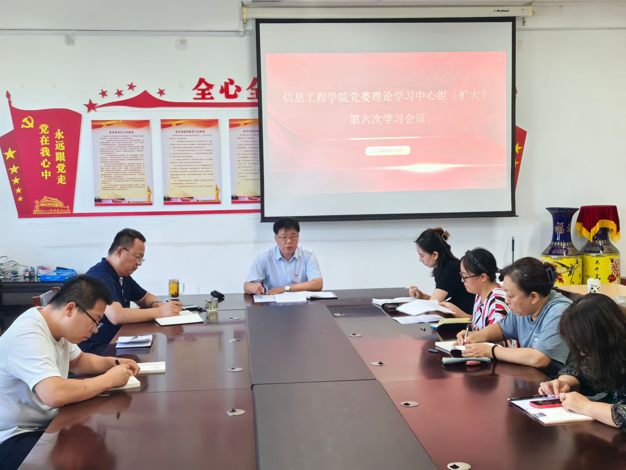 8月12日上午,院党委在7号教学楼212会议室举行理论学习中心组(扩大)第六次学习会,集中学习了《中国共产党第二十届中央委员会第三次全体会议公报》《中共中央关于进一步全面深化改革、推进中国式现代化的决定》。会议由院党委书记姚新红主持。