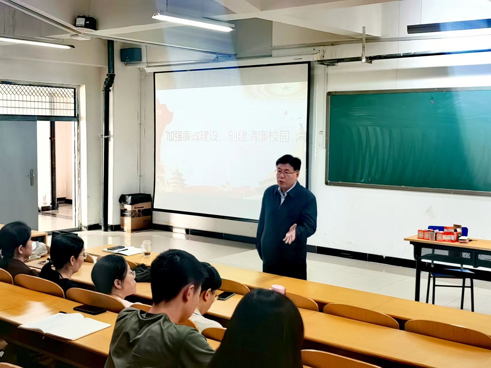 会议第二部分由学院党委委员、副院长张辉作了题为“扣好人生第一粒扣子”党风廉政教育宣讲,旨在加强学院师生对党风廉政建设重要性的认识,筑牢廉洁自律的思想防线。结合大量实际案例,深入浅出地阐述了党风廉政建设的重要意义、当前面临的挑战以及应对策略。本次课程让师生们深刻认识到腐败行为的严重危害,以及廉洁自律对于个人成长和学院发展的重要性。