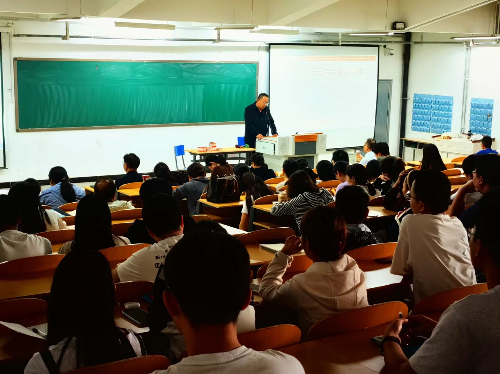 会议第一部分由学院党委委员、副院长张辉宣讲了党的二十届三中全会精神,向师生介绍了全会的重要意义和背景。通过详细阐述全会的主题、重大原则、重大举措等内容,让师生们对党的二十届三中全会精神有了更深刻的理解。特别是全会提出的教育、科技、人才是中国式现代化的基础性、战略性支撑这一重要论断,引发了师生们的强烈共鸣。