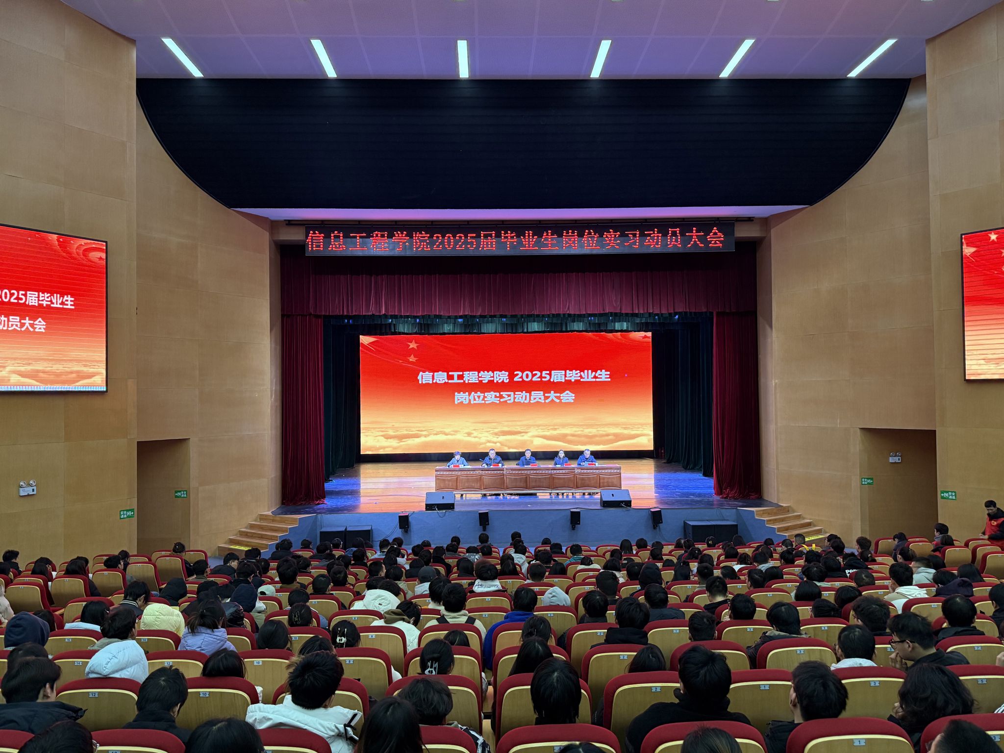 为深入贯彻落实党中央关于职业教育工作的决策部署和习近平总书记有关重要指示批示精神,进一步明确岗位实习的重要意义和具体要求,确保2025届毕业生岗位实习工作有序进行,信息工程学院于2024年11月26日上午在演艺中心举行了2025届毕业生岗位实习动员会暨安全教育大会。会议由副院长冯小玲主持,学院全体教工、2025届全体毕业生参加了会议。